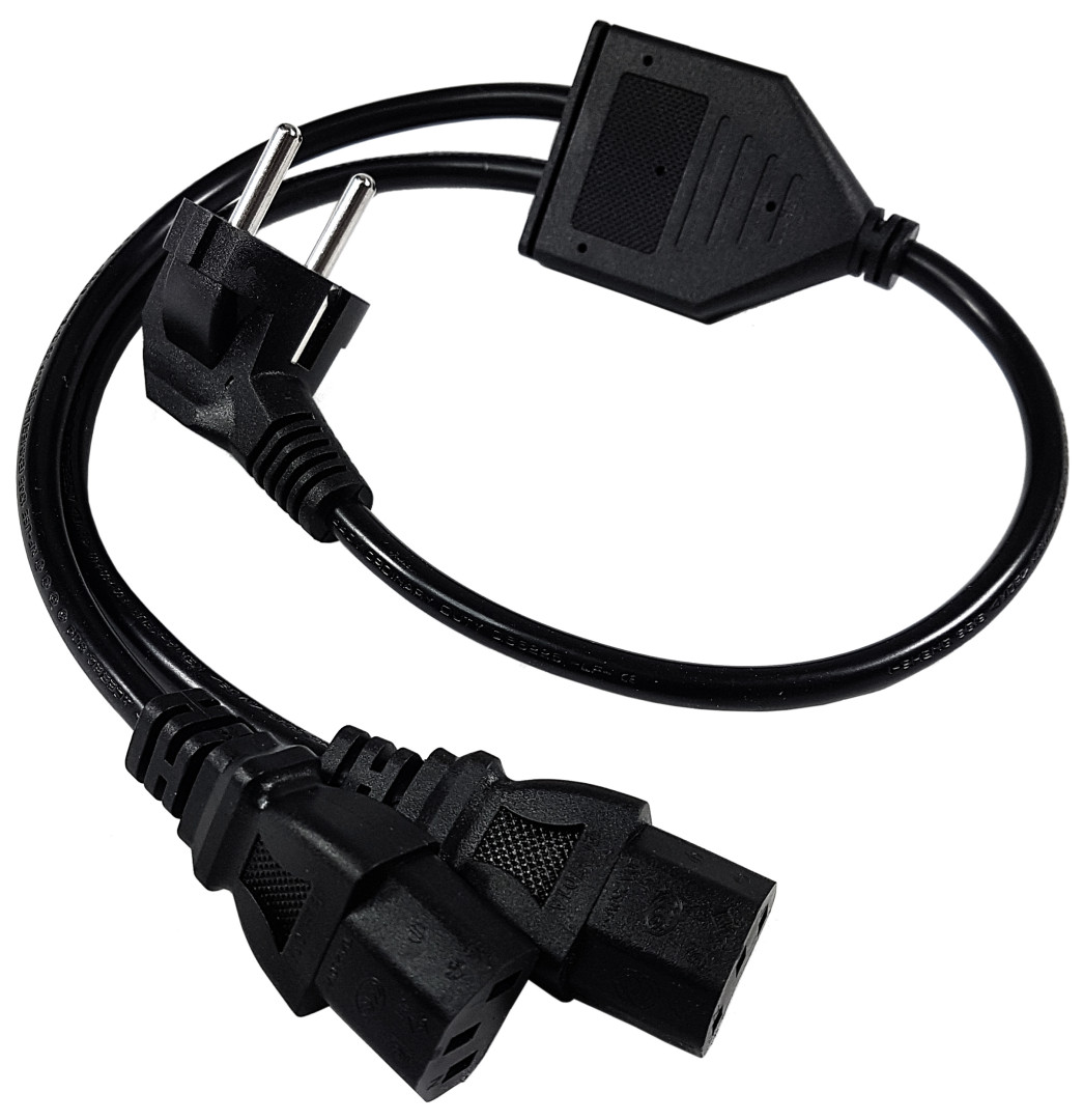 1 x CEE7/7 to 2 x C13 Power cord, H03VV-F, 3G x 0.75MM, 60cm wszystkie końcówki i przewód czarny